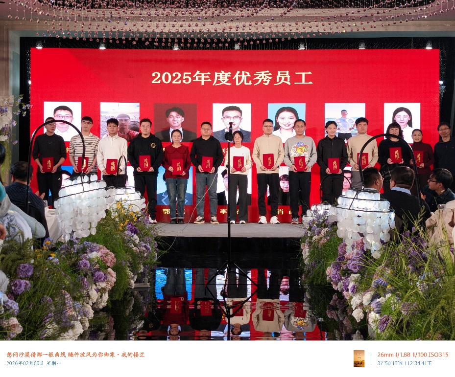 荣耀时刻:让奋斗者的光芒熠熠生辉 在备受期待的颁奖环节,年度优秀员工依次登台接受表彰。聚光灯下,掌声雷动,荣誉不仅属于个人,更属于每一份坚守与拼搏。这份隆重的致敬,既彰显研究院崇尚奋斗、鼓励创新的鲜明导向,也进一步激励全体员工在新一年勇担使命、再攀高峰。