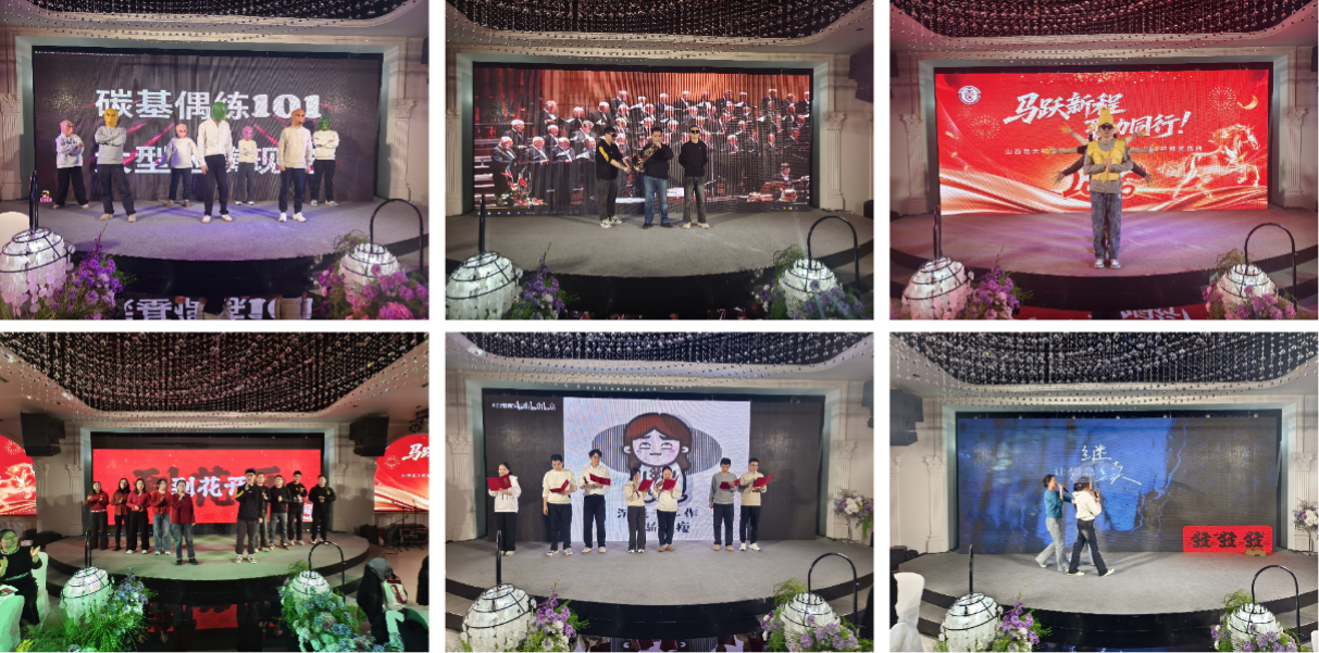 激情绽放:在欢聚中汇聚团队温度 文艺汇演将年会氛围推向高潮。独唱情感真挚、朗诵铿锵有力,合唱气势昂扬,多样化节目充分展现了科研团队多元而充满活力的精神风貌。互动抽奖与趣味游戏穿插其间,欢笑与掌声交织,现场洋溢着温暖与活力。晚宴交流中,大家畅谈发展愿景、分享成长感悟,团队凝聚力在轻松愉悦的氛围中进一步升华。